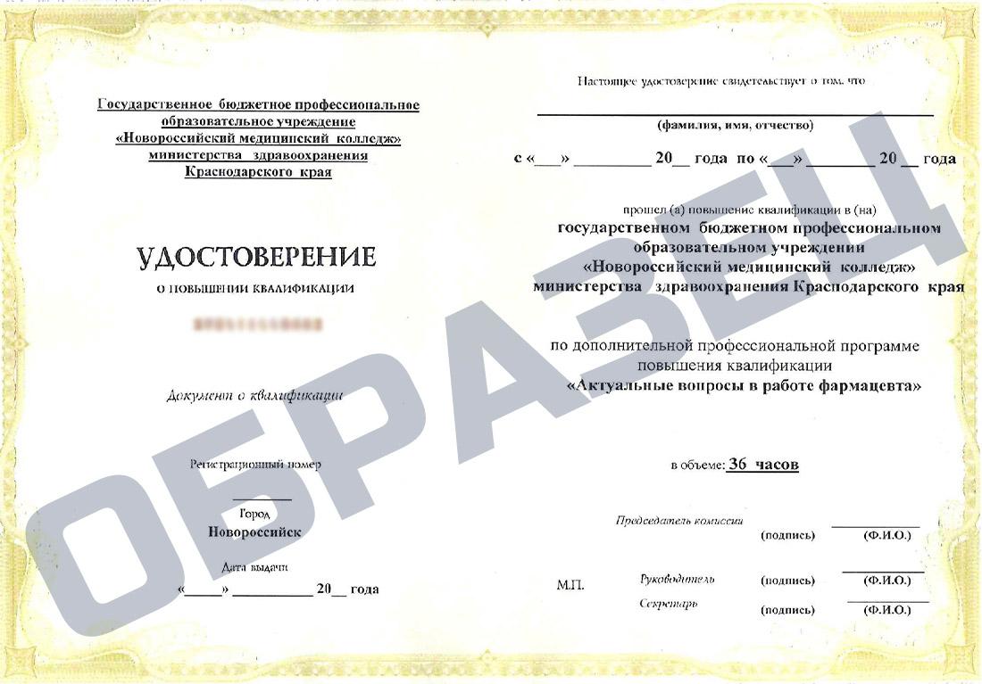 К обучению по программе повышения квалификации «Актуальные вопросы в работе фармацевта» в объеме 36 часа по специальности «Фармация», принимаются лица имеющие диплом о среднем медицинском образовании.
