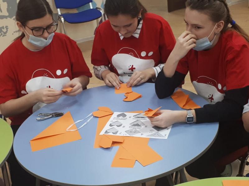 Талисман-сердце - «Символ добра и скорой помощи», в акции приняли участие студенты первого курса. Своими руками волонтеры сделали из бумаги оранжевого цвета сердца и подарили их водителям машин скорой помощи, в знак добра и веры.
