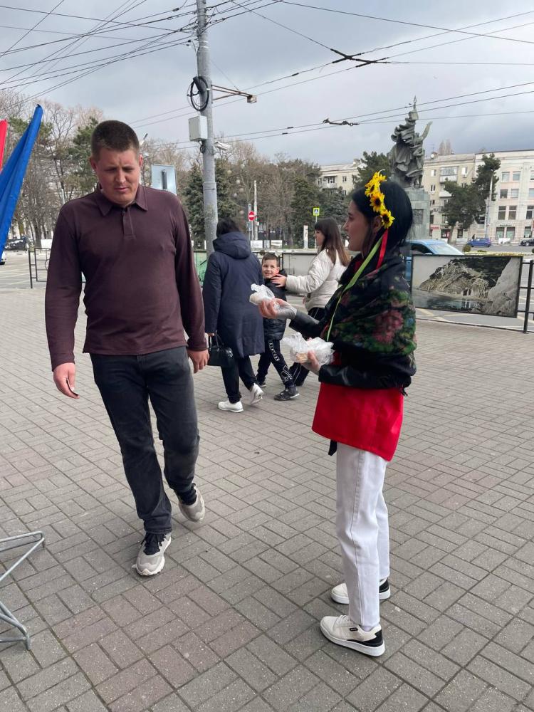 Студенты ГБПОУ «Новороссийский медицинский колледж» в этот день, в качестве волонтеров занимались раздачей масленичных блинов всем избирателям и прохожим рядом с избирательными участками.